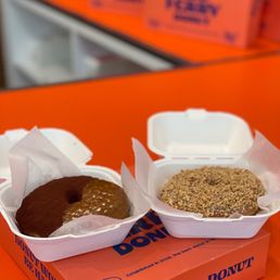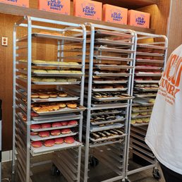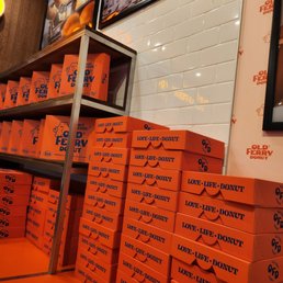 Old Ferry Donut at The Source in Buena Park is hands-down my favorite spot for donuts. They offer a wide variety, and every donut I've tried so far has been amazing! This time, we ordered the Butter Pistachio, Boston Cream, and Peanut Butter & Jelly. The standout for me was definitely the Peanut Butter & Jelly--it's like a classic PB&J sandwich but elevated into a delicious donut twist. If you're a PB&J fan, you have to try it! The staff here is incredibly friendly and accommodating, always making the experience even better. They also have some cute merchandise for sale, which is a nice bonus if you're looking for something extra. The inside of the shop is small but cozy, and the bright orange decor makes it super easy to spot. Parking at The Source is free inside the parking structure, which is convenient. If you're in the area and craving donuts, Old Ferry Donut is a must-visit!